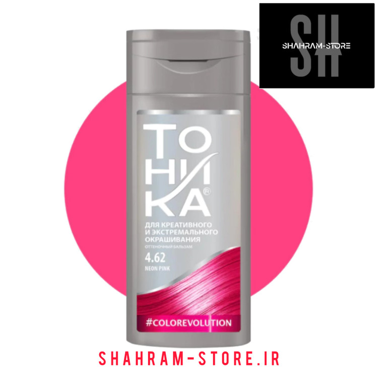 شامپو رنگ تونیکا شماره 4.62 رنگ صورتی نئونی رنگساژ بدون نیاز به اکسیدان می باشد. شامپو رنگ تونیکای روسی حاوی رنگدانه های بسیار غلیظ با قدرت جذب بسیار بالاست و بدون نیاز به اکسیدان بر روی موهای دکلره شده جذب شده و ماندگاری بسیار بالایی را فراهم می کند. شامپو رنگ فانتزی توهیکا بر روی موهای روشن تر از پایه 7 تنها رفله ای از رنگ ایجاد می کند و بهتری است برای دریافت نتیجه بهتر بر رویموهای دکلره شده استفاده شود.
