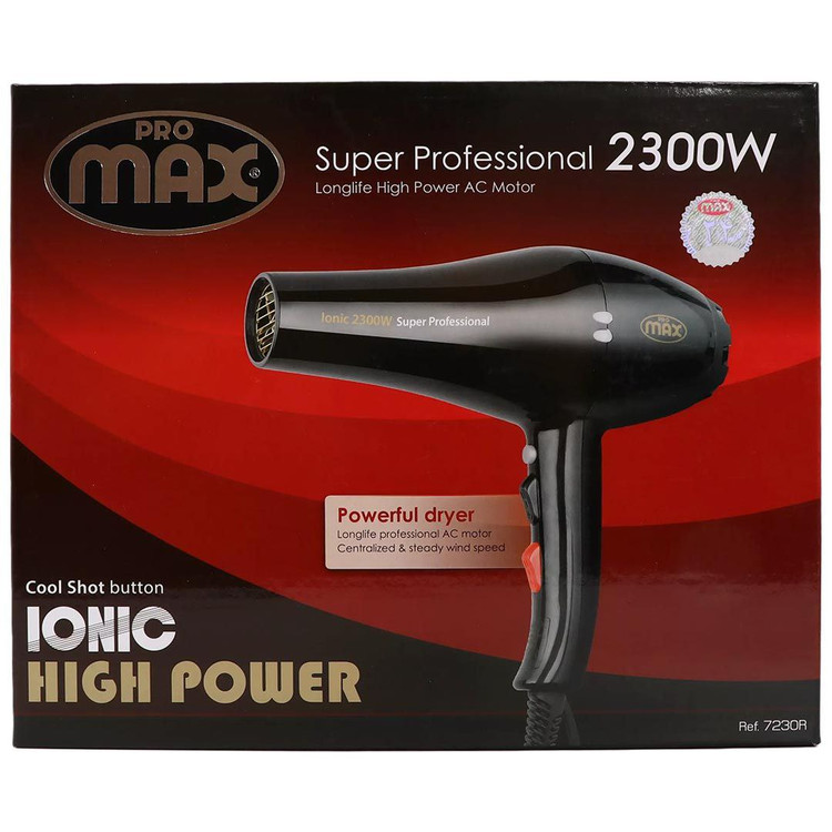 سشوار آیونیک پرومکس مدل 7230R (Pro Max Hair Dryer 7230R) دارای یک موتور قدرتمند و حرفهای است که شما با بهره از آن میتوانید به موهای خود حالت را دهید و آنها در کوتاهترین زمان ممکن به سرعت خشک کنید. این سشوار مقاومت و دوام بسیار زیادی داشته و حتی بسیاری از سالندارها میتوانند از آن بهره بگیرند. در حقیقت این محصول یک سشوار نیمه حرفهای محسوب میشود که عملکرد فوقالعادهای دارد. فناوری تولید یون در این دستگاه موجب شده تا از وز شدن و آسیب به موهای خود جلوگیری کنید. در ادامه اطلاعات جامع و دقیقتری از این محصول را در اختیار شما قرار خواهیم داد.